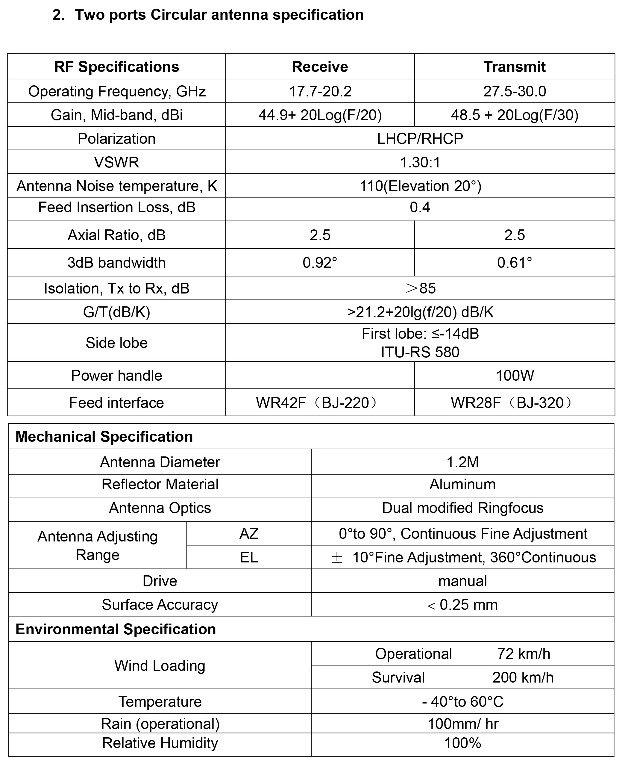 Probecom 1.2M Ka band antenna adopts all aluminum re-enforced reflectors, consisting of precisely formed panels with matched radials and hub assemblies, ensure the ease of installation. The standard designed azimuth over elevation pedestal provides a cost-effective solution for high stiffness and stability, full orbital arc coverage and fine drive performance, and ensures the pointing accuracy for Ka-Band.