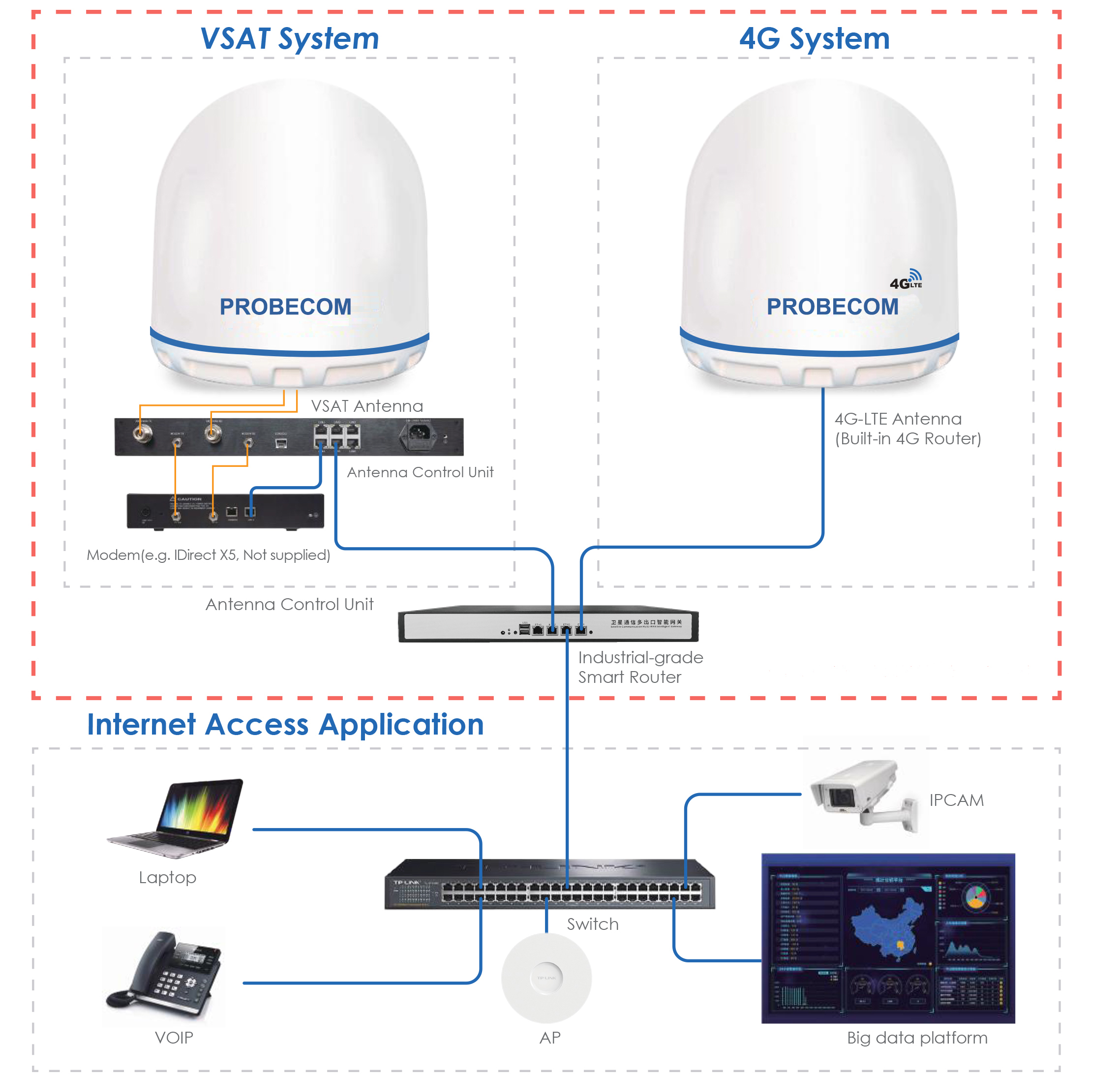 * Ensure Seamless Internet Access, automatically switching between VSAT and 4G System