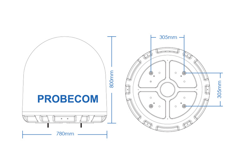 Standard VSAT, 64cm Dish Diameter , Ku band, 3 Axis Stabilized and 4-Axis Tracking